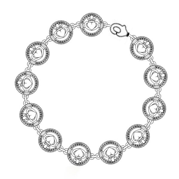 This Claddagh Bracelet measures 7.5″ in length.