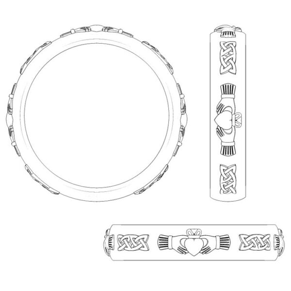 Claddagh Wedding Ring with Celtic Knot design. This Claddagh Ring is ideal for both man and woman so tie your knot with this unique piece of Irish Jewelry. What better way to declare your everlasting love to each other. So get your matching pair of Claddagh Wedding Bands today. Claddagh originated in or close to the small fishing village of Claddagh in Galway.