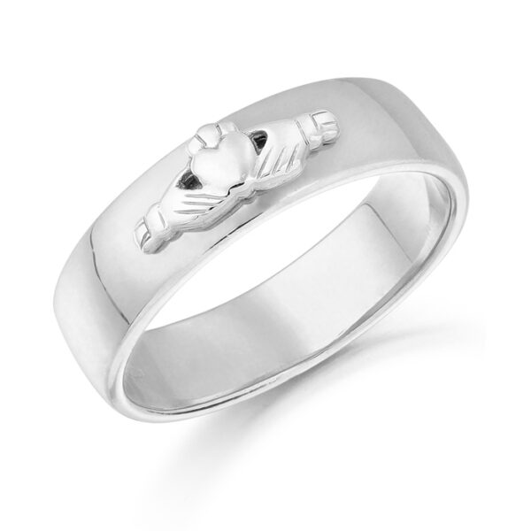 9K White Gold Claddagh Wedding Band. Symbol of their eternal love.