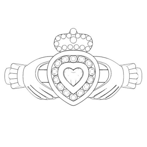Silver Claddagh Ring looks truly Irish set with synthetic Emerald. Emerald set as Heart surrounded with precision set Cubic Zirconia stones which further decorate the concept. Cubic Zirconia stone setting brings out the beauty & sparkle. One can’t help but adore beautiful Irish craftsmanship. Irish Made Ladies Claddagh Ring crafted from Silver. Irish Jeweller’s interpretations of Ireland’s beauty, complexity of design and quality workmanship are captured beautifully in this Gemstone Ring. Furthermore, craftsmanship included throughout in extensive Celtic & Claddagh Jewelry collection. Our Irish Jewelry collection tested and Dublin Assay office hallmarked. Irish Promise Ring makes an ideal Irish Jewellery Gift. Also Claddagh known as a symbol of love throughout the world. Perfectly designed and crafted by skilled hands.